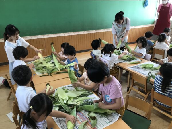 もろこしの皮むきに挑戦!!
