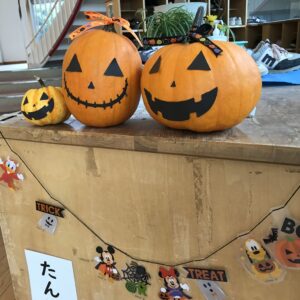 今日は、ハロウィンのかぼちゃがお出迎え。