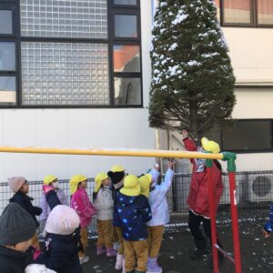 揺らしたら雪が落ちてこないかな~なんて楽しんでいた子ども達でした。