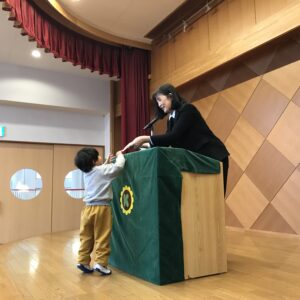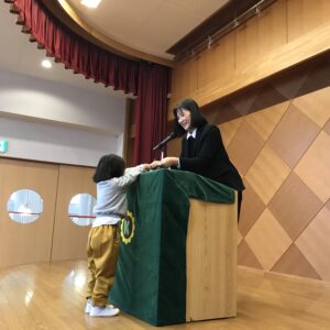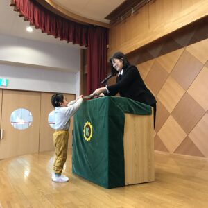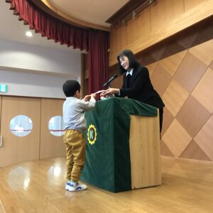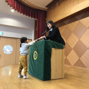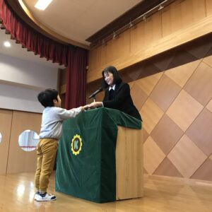 クラス代表のお友だちが、園長先生から「ひまわり賞🌻」を受け取りました。