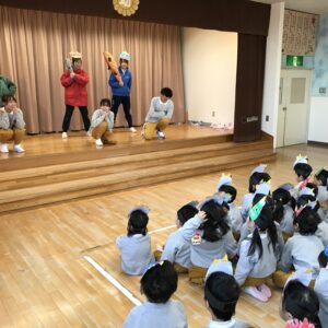 節分の話を聞いた後、先生たちから節分の由来の劇